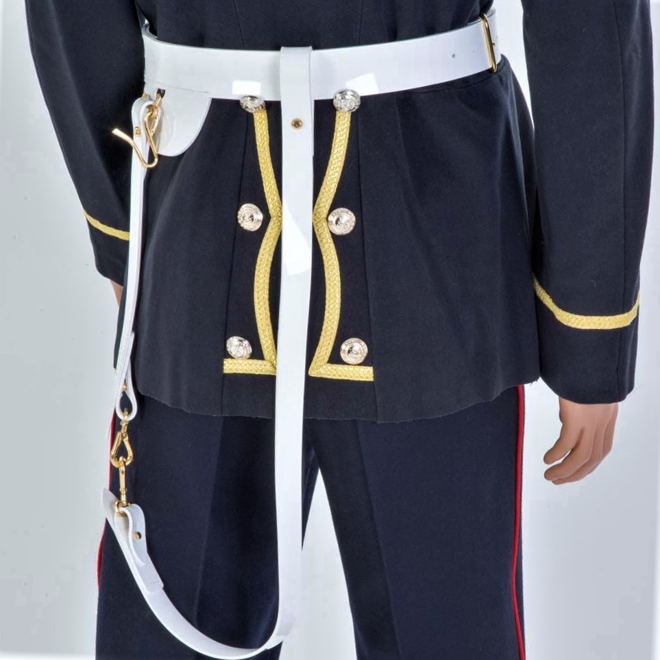 White Gloss PVC, W.O.s Ceremonial Sword Belt, 45mm width (1 3/4") with Gold finish Fittings