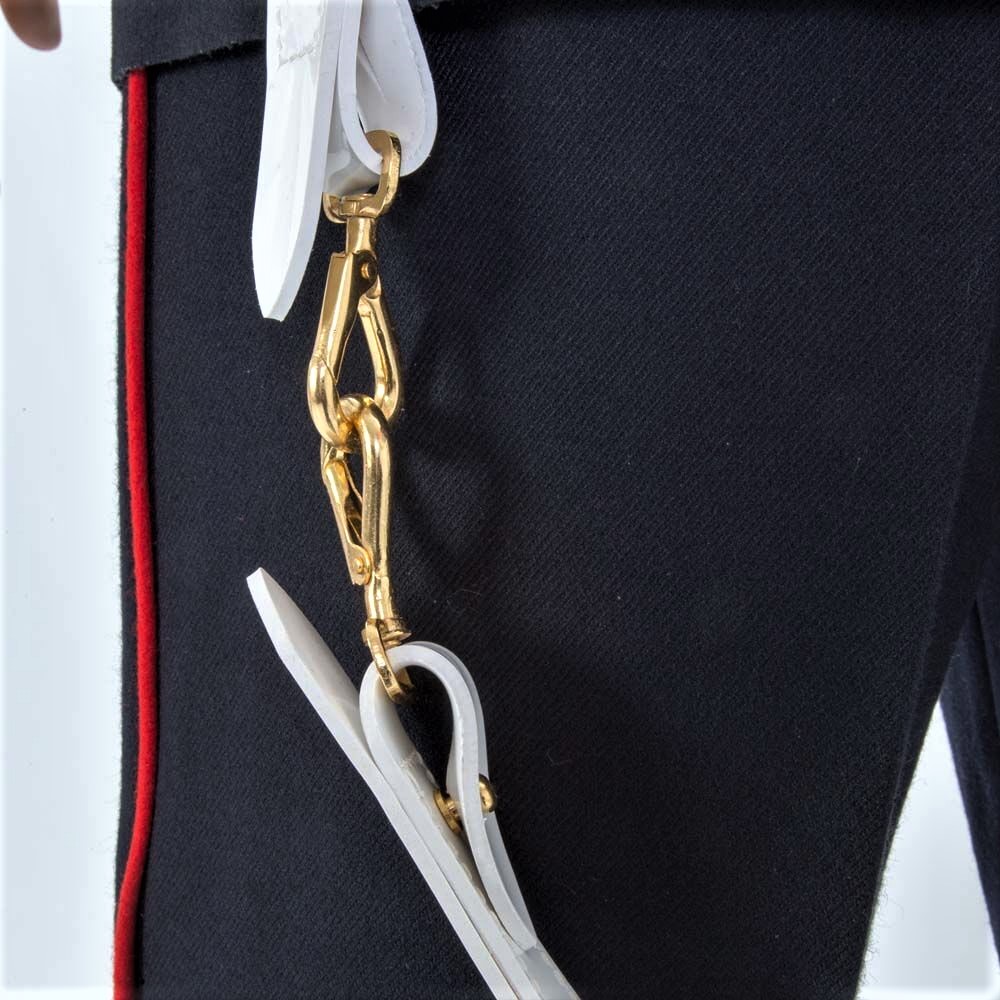 - 2 x White Gloss PVC Sword Straps (1 x Long & 1 x Short) with Gold finish Spring Clips & Studs (to attach to the Sword Scabbard)
